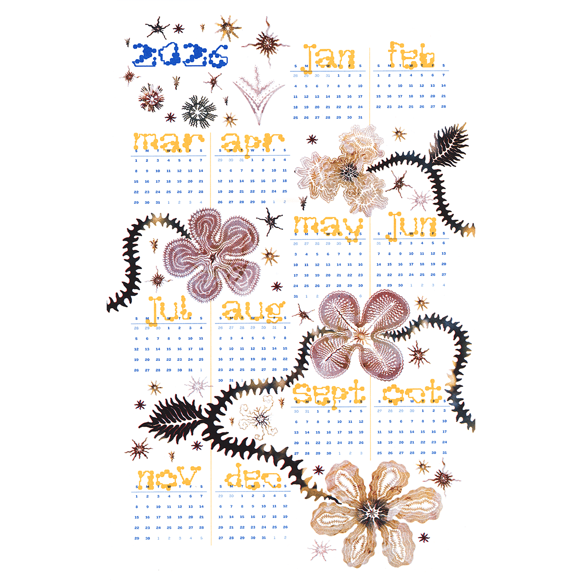 Risograph printed in blue, scarlet, and sunflower inks on white cover weight paper. Due to the nature of riso printing each poster varies slightly.